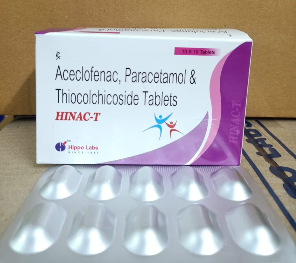 Thiocolchicoside + Aceclofenac + Paracetamol is a combination of a muscle relaxant (Thiocolchicoside ) and two pain relievers ( Aceclofenac , Paracetamol). The muscle relaxant works on the centers in the brain and spinal cord to relieve muscle stiffness or spasm and improve movement of muscles. The pain relievers work by blocking the release of certain chemical messengers in the brain that cause pain and inflammation (redness and swelling).