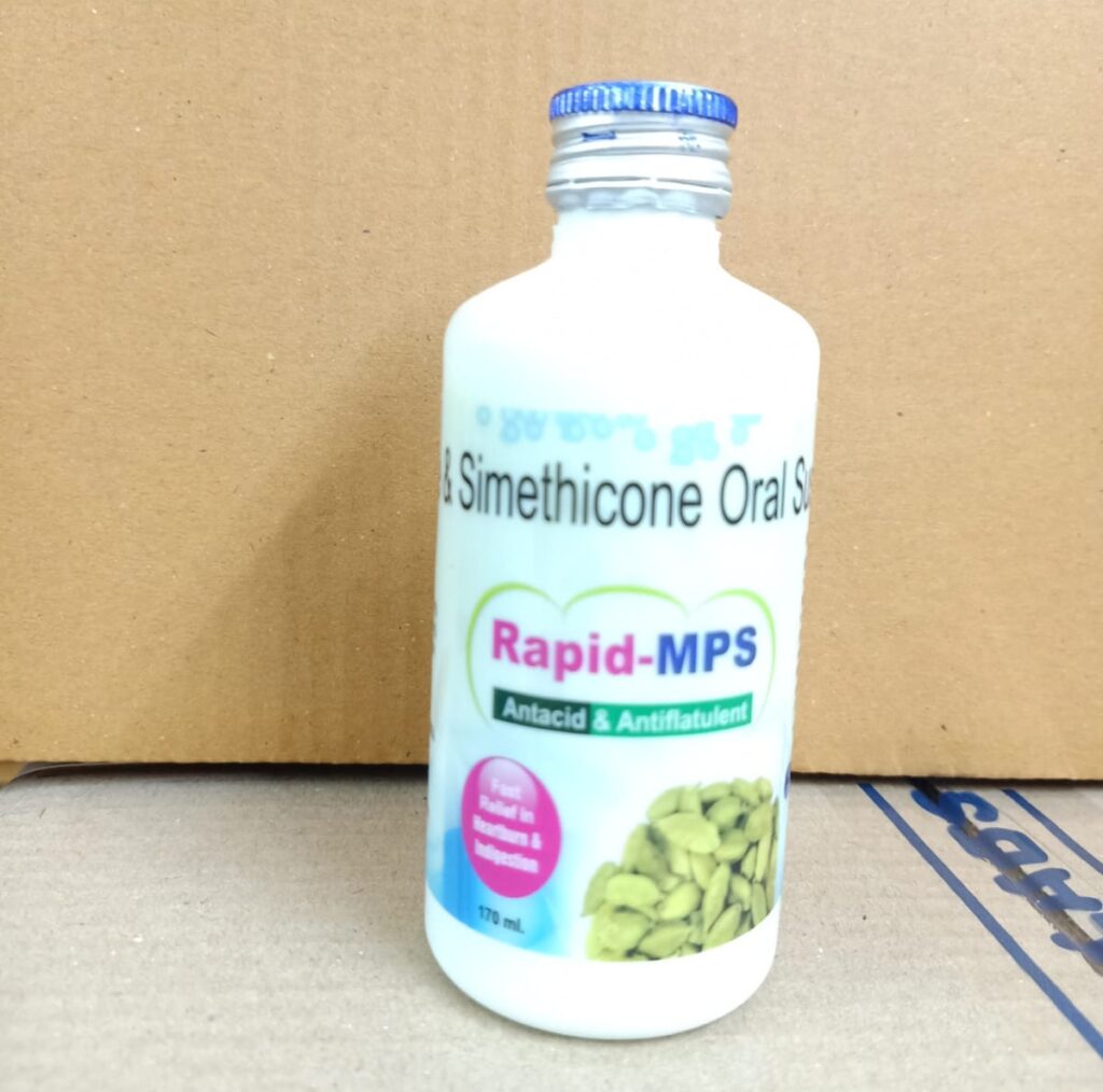 RAPID-MPS Suspension is a combination medicine used in the treatment of acidity, stomach ulcer, bloating. It neutralizes excessive acid in the stomach and helps in easy passage of gas.