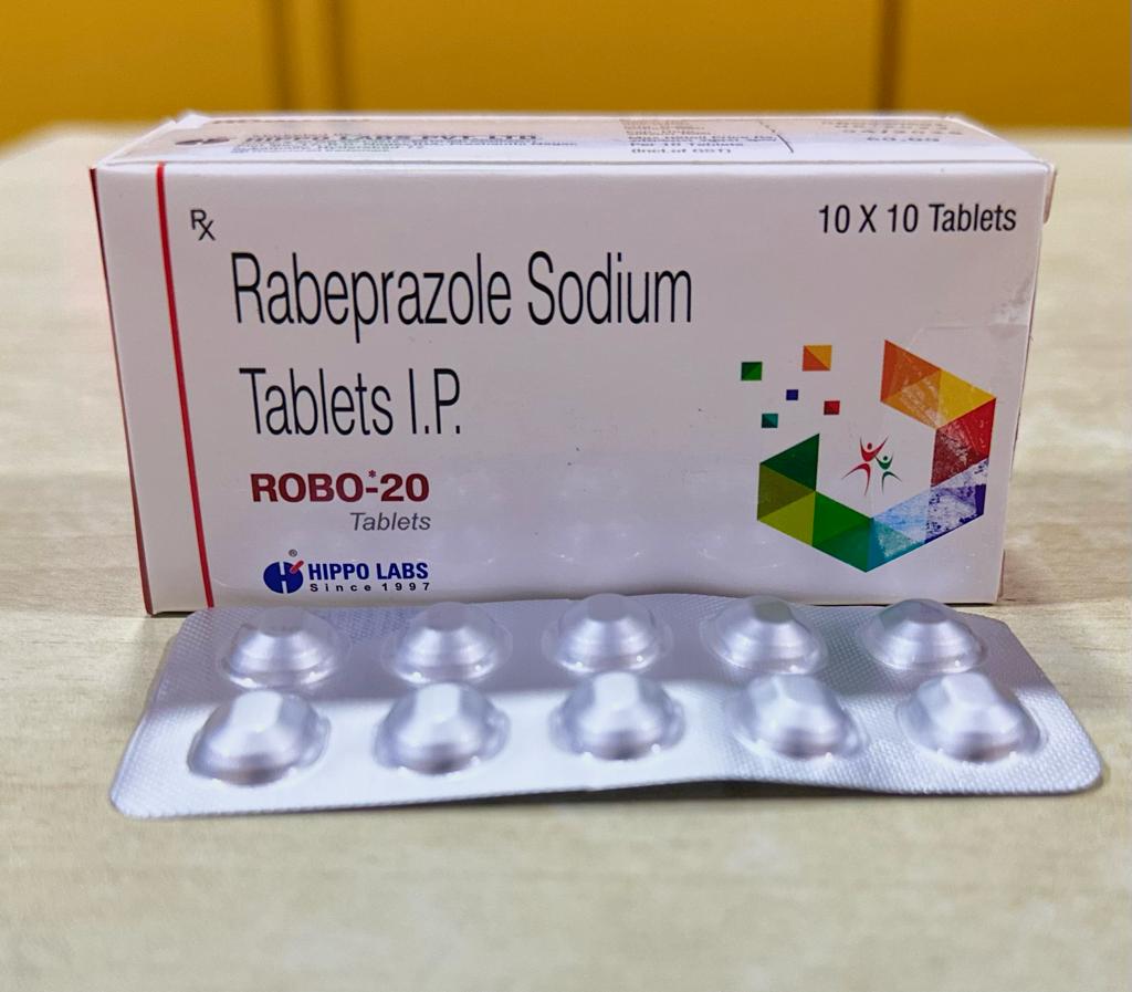 Rabeprazole sodium, a rapid acting proton pump inhibitor (PPI). Rabeprazole is a substituted benzimidazole which suppresses gastric acid secretion by inhibiting the gastric H+/ K+ ATPase at the secretory surface of the gastric parietal cell.